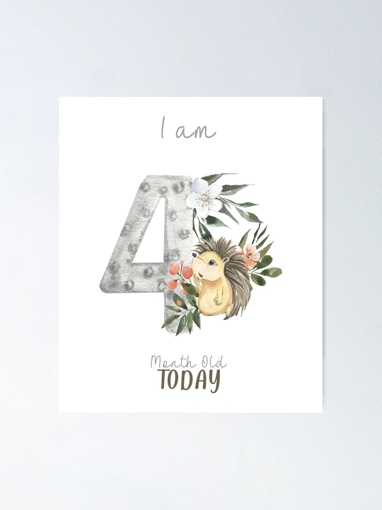 I am 4 month old today watercolor set animal woodland birthday for newborn Poster
